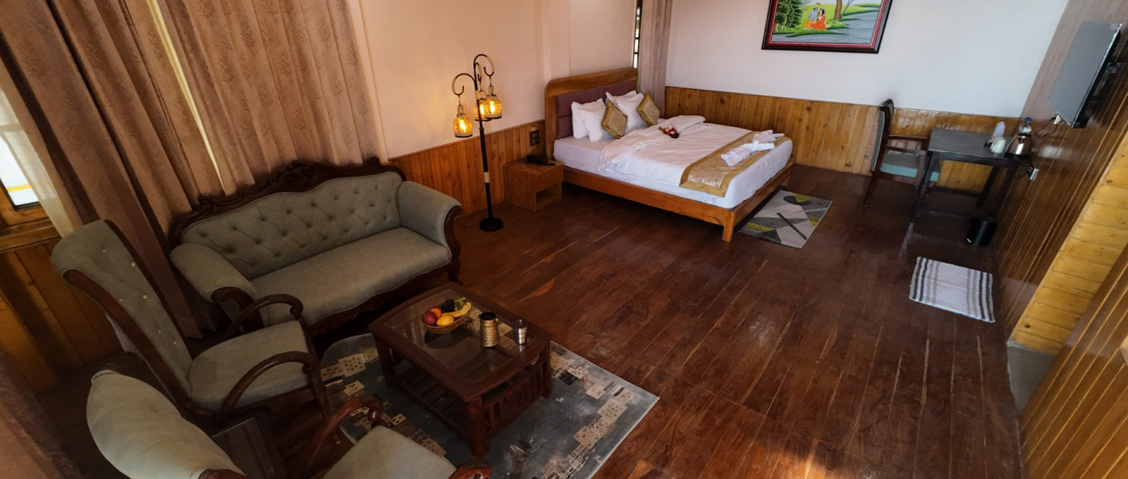 A highlight of this room is the private Jacuzzi, allowing guests to enjoy a soothing and relaxing experience after a day of exploring the hills. The peaceful ambiance and luxurious amenities make it an ideal choice for couples and special getaways.