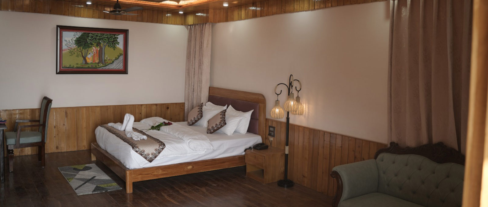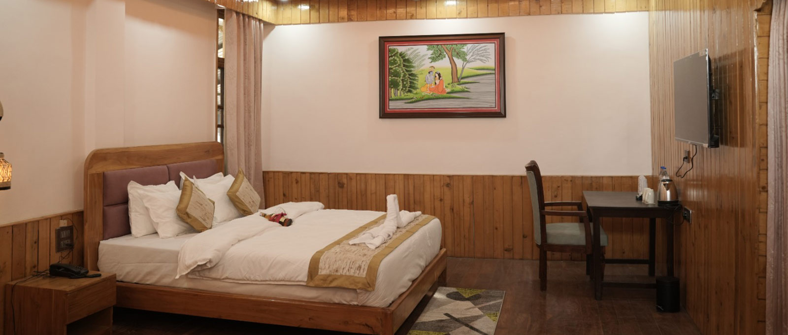 The room features a comfortable king-size bed, stylish furnishings, and a private balcony where you can relax while enjoying the refreshing mountain breeze and scenic views of the beautiful Dharamshala surroundings.